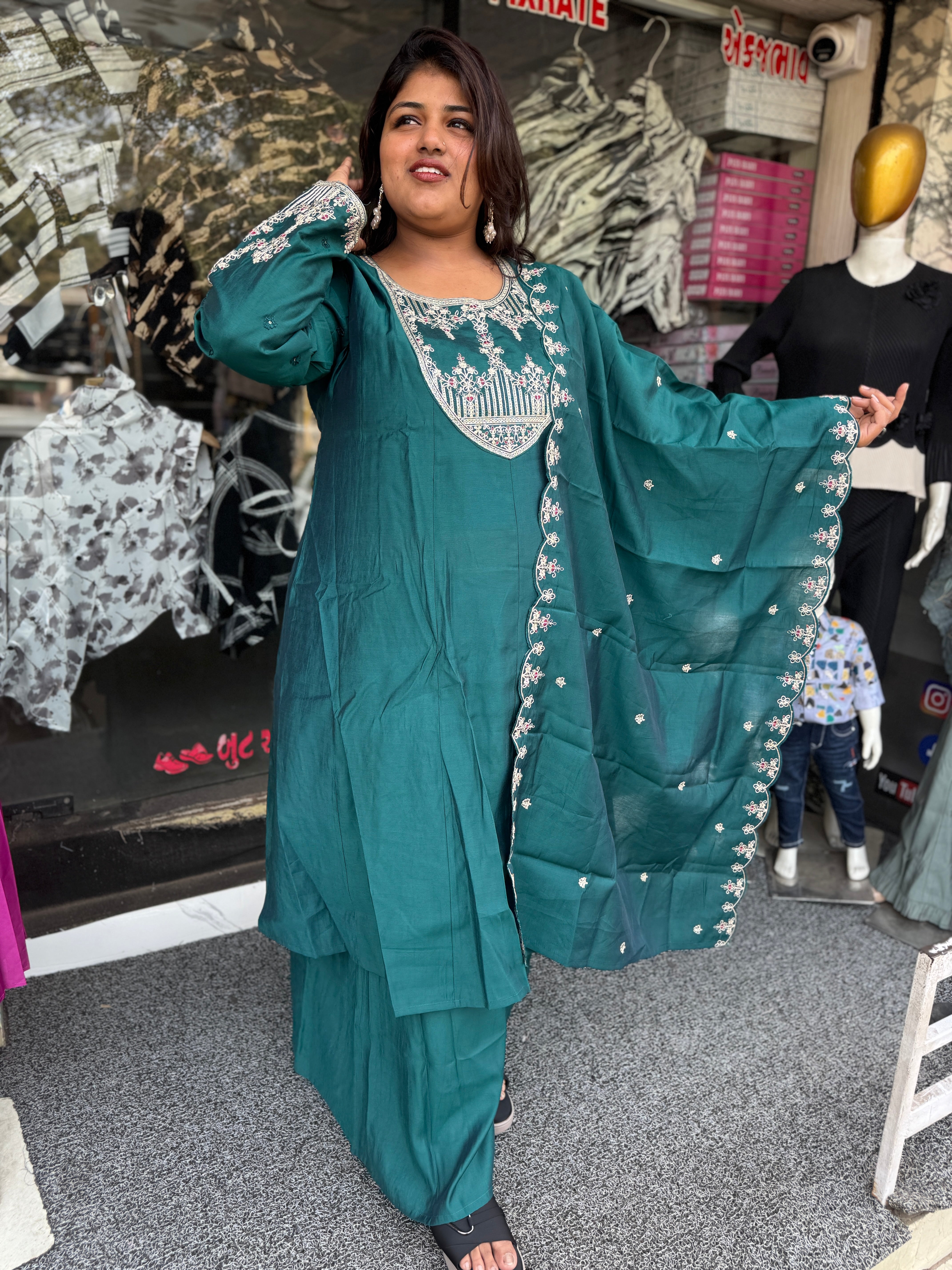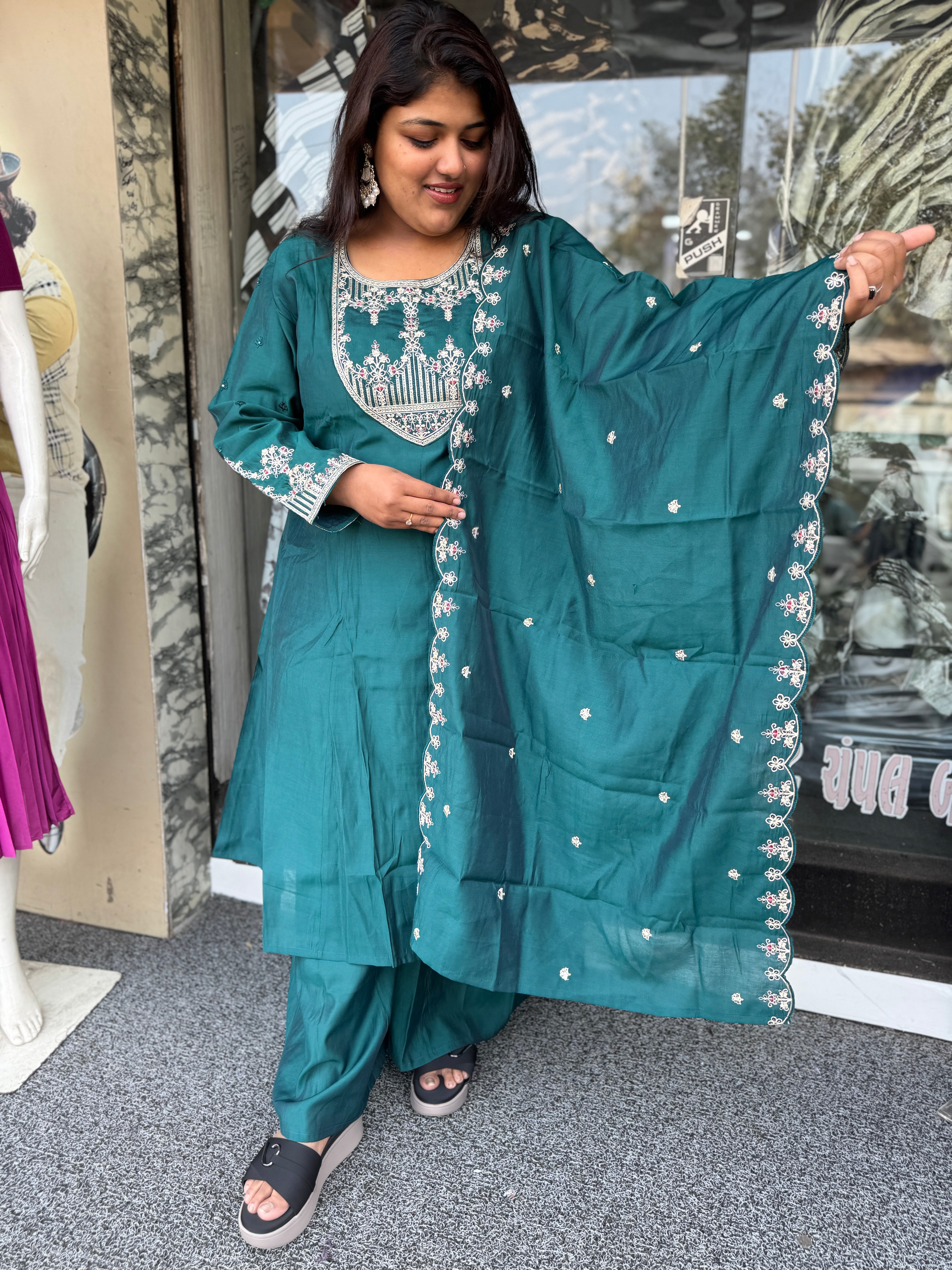 Celebrate your curves in style with this teal green plus size suit set by Raja Fashion 👑. Designed for comfort and elegance, this outfit features beautiful embroidery and a flattering fit that suits every body shape. Perfect for festive occasions, family gatherings, and graceful everyday ethnic wear.