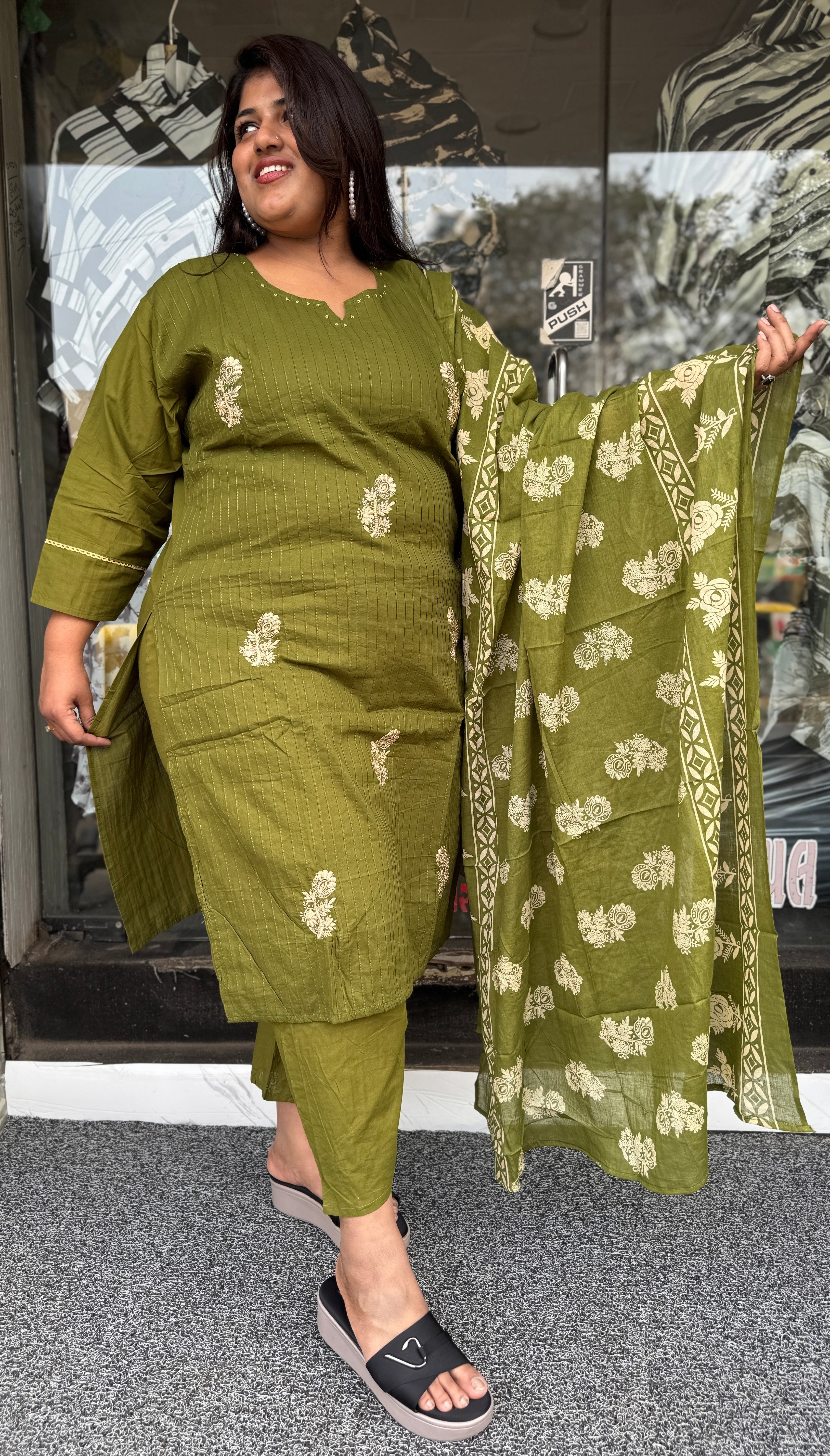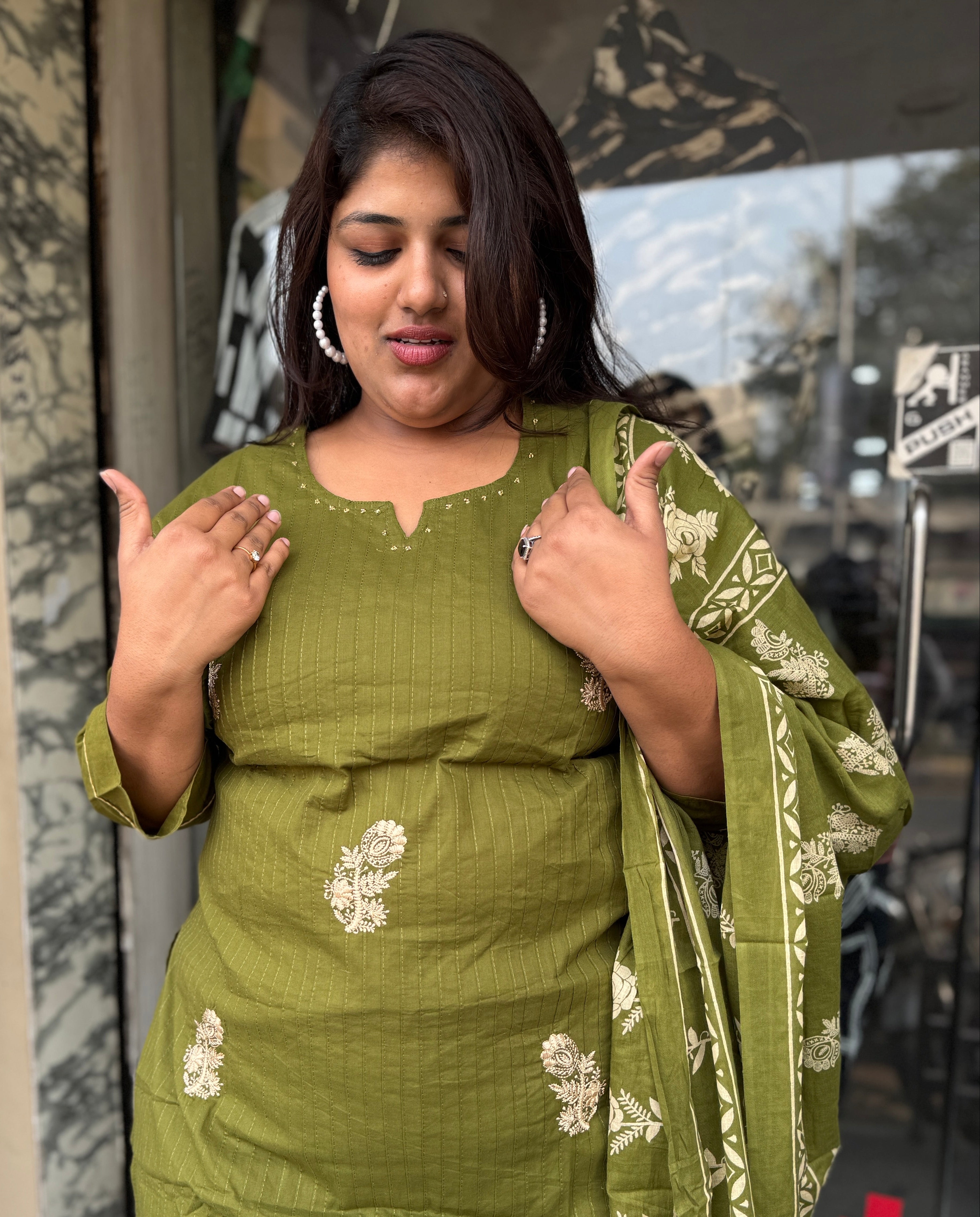Specially designed for plus size women, this kurta set comes with a comfortable straight-fit kurta, matching pants, and a beautifully printed dupatta. Perfect for daily wear, office, casual outings, and small functions. Easy to style, lightweight feel, and great value for money.