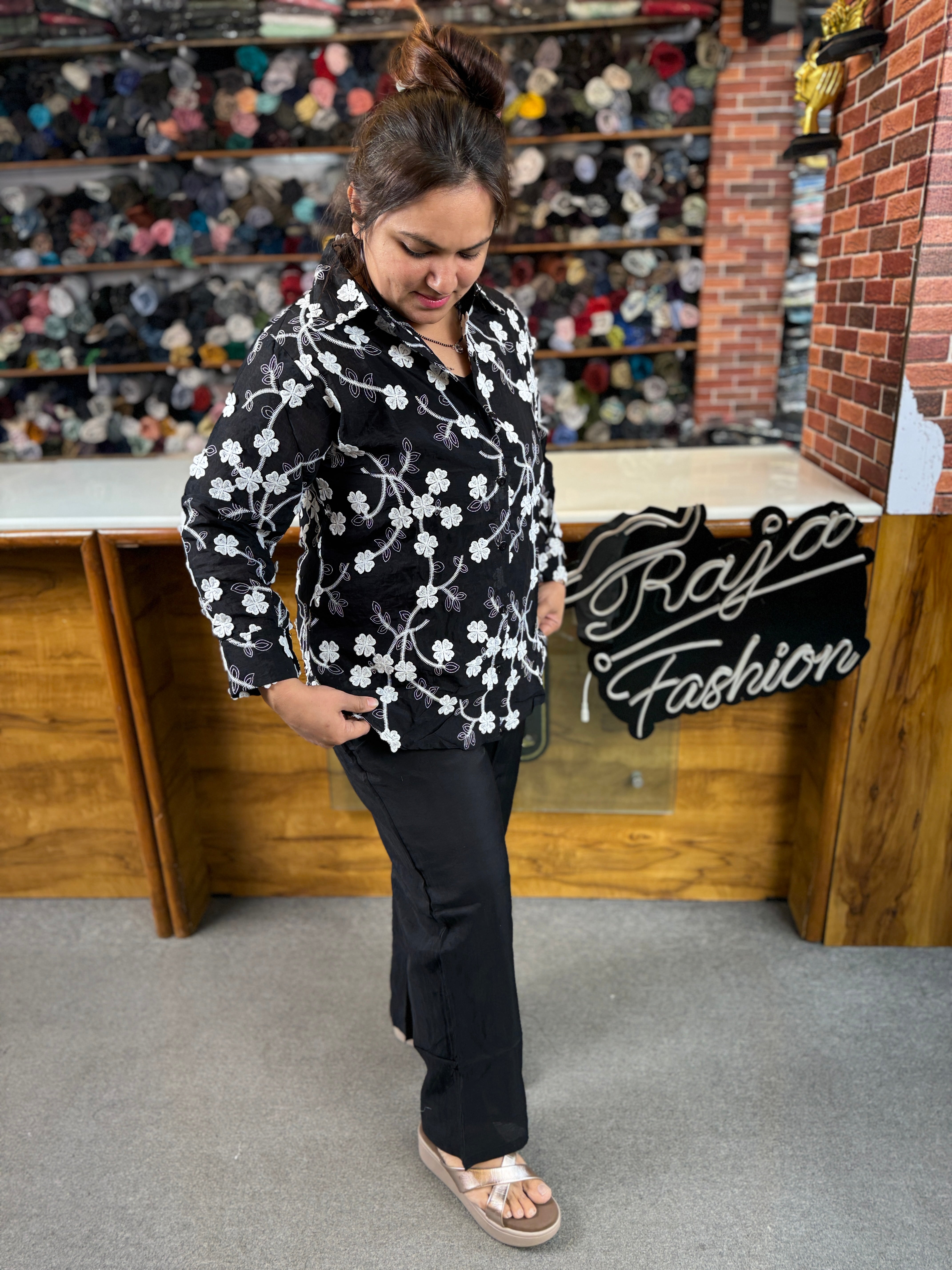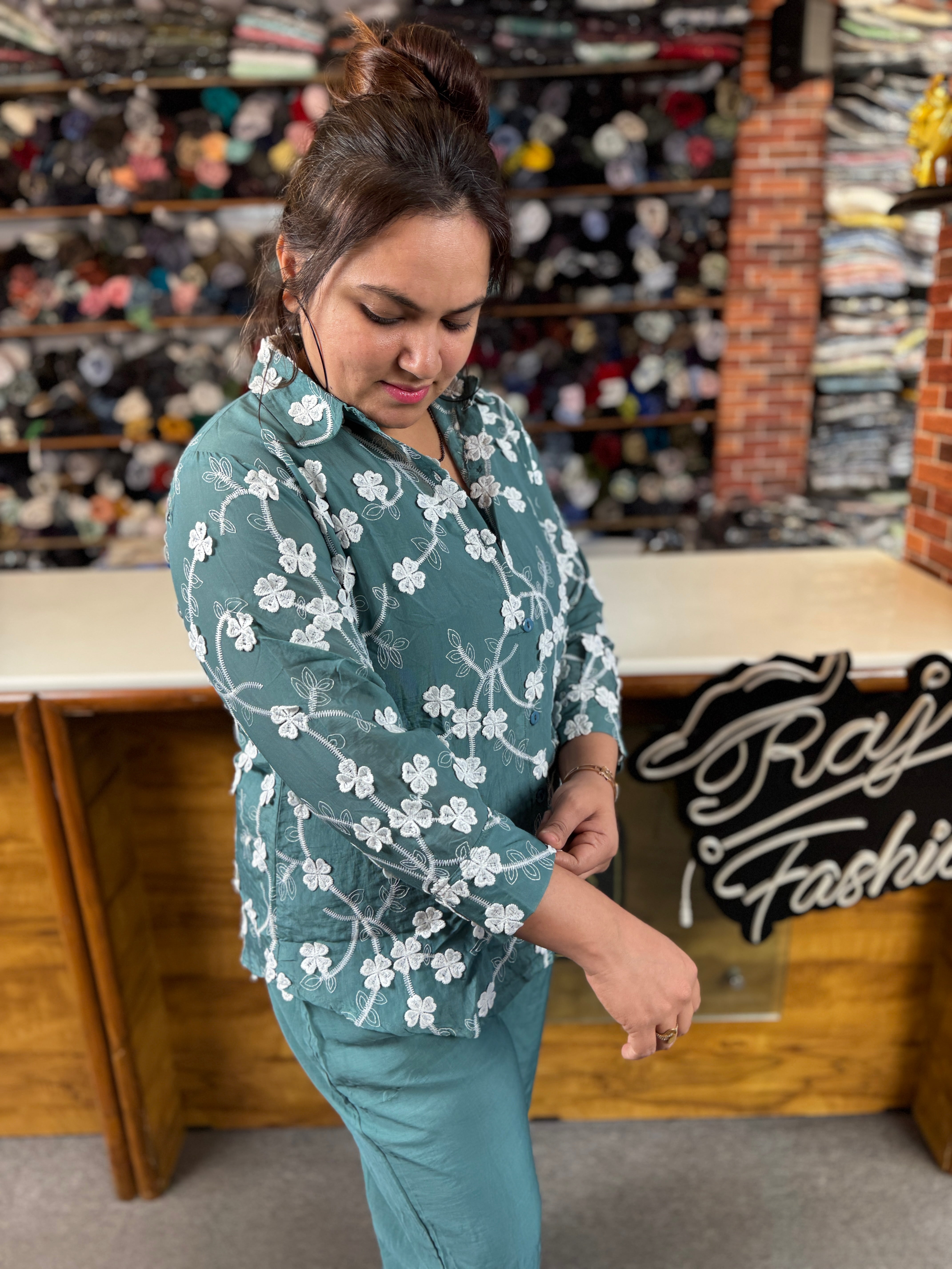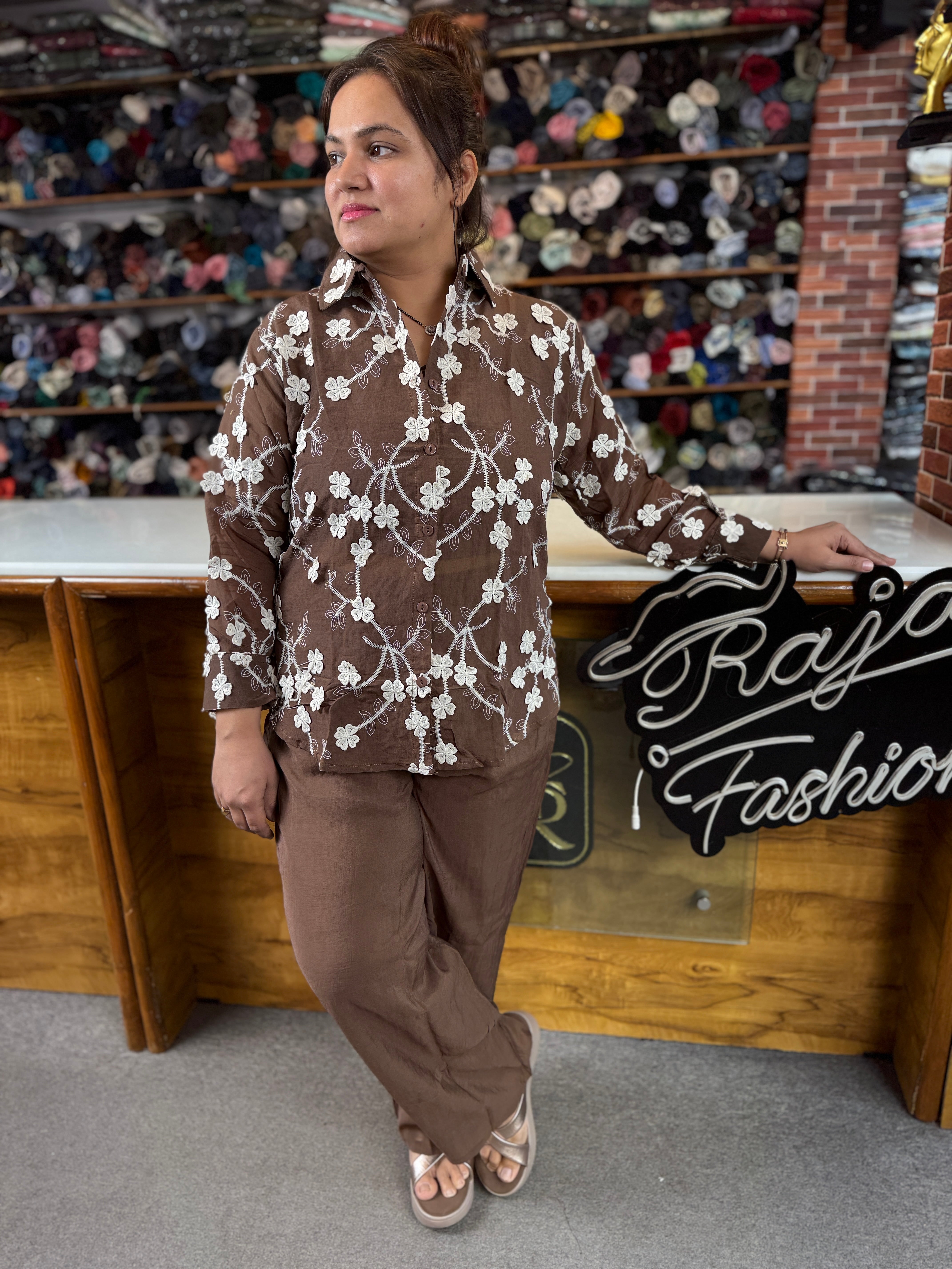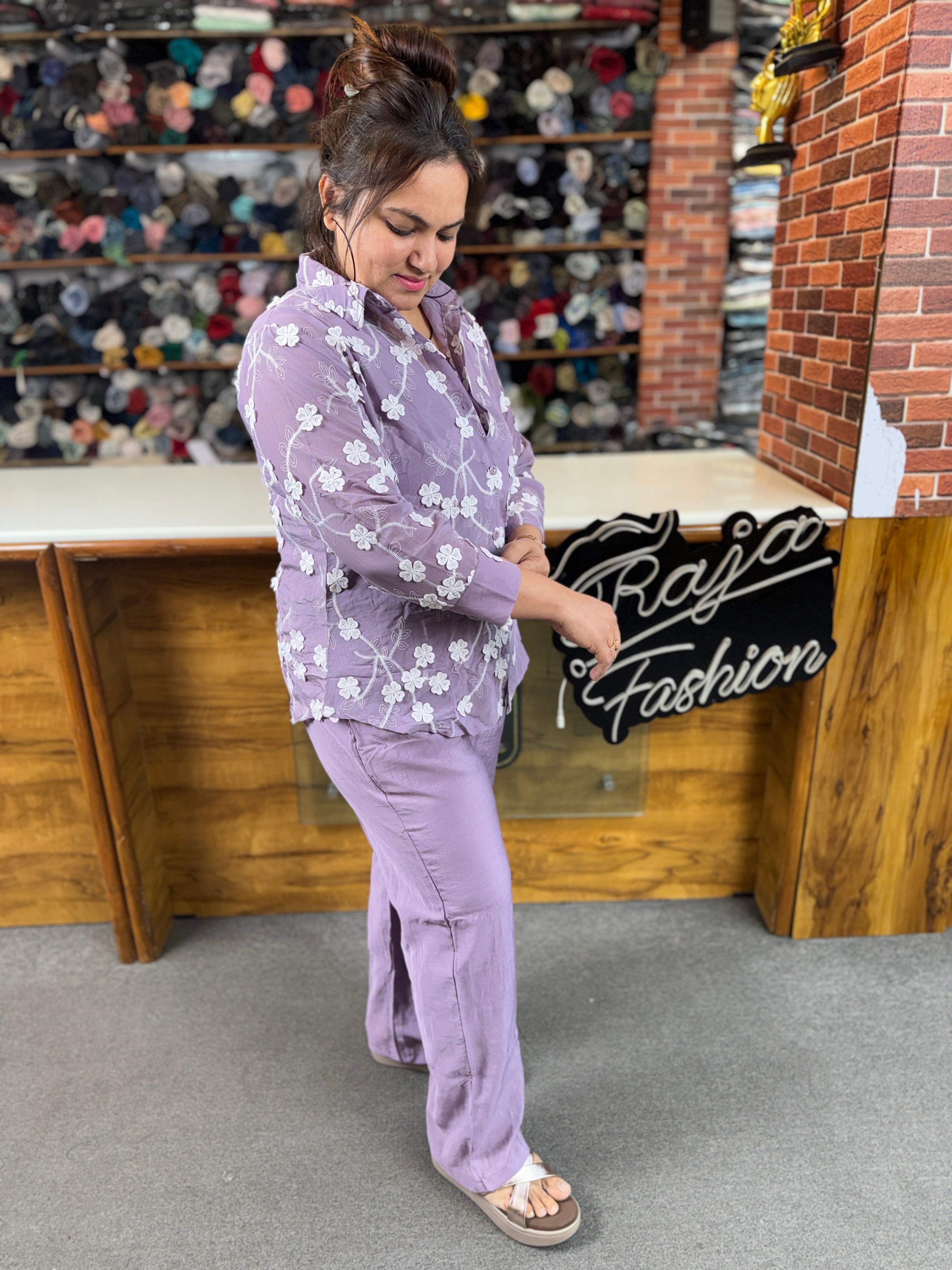 Upgrade your daily style with this elegant floral embroidered co-ord set for women. Made from soft, breathable cotton fabric, this outfit offers all-day comfort with a trendy look. Perfect for casual wear, outings, office, or travel. Available in 4 beautiful colours, this co-ord set features a stylish shirt with matching pants for a complete outfit. Designed to fit waist sizes 28 to 38, it gives a relaxed and flattering fit for every body type.